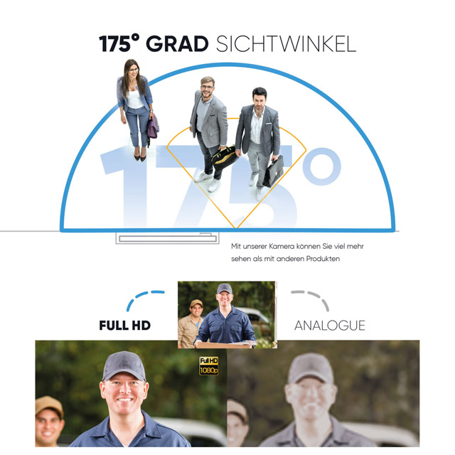 Darüberhinaus verfügt die Türstation über einen integrierten Hell/Dunkel-Sensor. Bei einsetzender Dunkelheit wird automatisch die Beleuchtung Ihres Namensschildes, sowie der Klingeltaste eingeschaltet. Dank der leistungsstarken Nachtsicht-LEDs sehen Sie auch bei Dunkelheit wer vor Ihrer Tür steht.