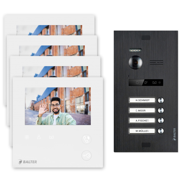 BALTER EVO Video Türsprechanlage 4 x 4.3″ LCD Mini Monitor 4 Familienhaus Schwarz