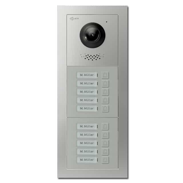 Die hochwertige Goliath Hybrid Aussenstation mit einer eloxierten Aluminiumplatte, verfügt über eine 1/2.5″ 2MP CMOS Kamera mit einem Weitwinkelobjektiv von 180° und 10 Klingeln