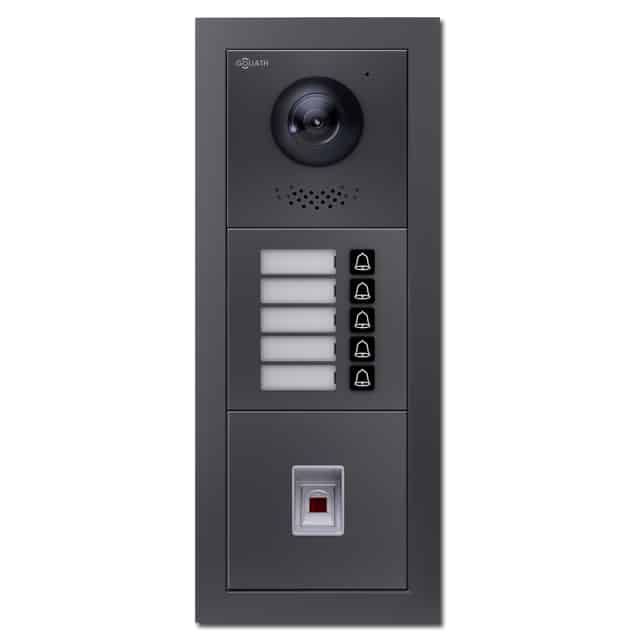 Die hochwertige Goliath Hybrid Aussenstation mit einer eloxierten Aluminiumplatte, verfügt über eine 1/2.5″ 2MP CMOS Kamera mit einem Weitwinkelobjektiv von 180°, 5 Klingeln und einen Fingerprint Sensor. Um den Fingerprint Sensor nutzen zu können, müssen vorher die Fingerabdrücke im System hinterlegt werden. Sie haben die Möglichkeit bis zu 50 Fingerabdrücke mit Namen zu hinterlegen. Das erleichtert später die Kontrolle, wer Ihr Zuhause betreten hat.