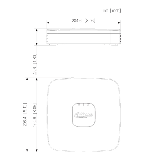- Produktabmessungen: 204,6 mm × 206,4 mm × 45,6 mm (8,06 Zoll × 8,12 Zoll × 1,80 Zoll) (B × T × H)